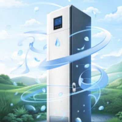 Il capte l’humidité de l’air et la transforme en eau potable grâce à un système de condensation et filtration.